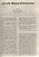 Αντίγραφο της σελίδας του περιοδικού Ζυγός (τεύχος 31, Οκτώβριος 1978) με το κείμενο του Νίκου Εγγονόπουλου για τον Φώτη Κόντογλου. Στο συγκεκριμένο αφιέρωμα συμμετείχαν επίσης με κείμενά τους για τον Κόντογλου ο Δημήτρης Παπαστάμος και ο Γιάννης Τσαρούχης.