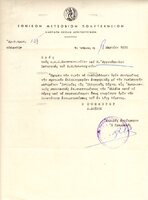 Ακριβές αντίγραφο επιστολής του Κοσμήτορα της Σχολής Αρχιτεκτόνων προς τους καθηγητές κ. Δ. Κωνσταντίνιδη και Ν. Εγγονόπουλο, σχετικά με τη διεξαγωγή διαλέξεων για την Ιστορία της Ελληνικής τέχνης σε αμερικανούς φοιτητές, και αντίγραφο της άρνησης του Νίκου Εγγονόπουλου, καθώς, όπως ομολογεί δε γνωρίζει την αγγλική γλώσσα σε βαθμό ικανοποιητικό για να ανταπεξέλθει.