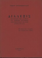Εξώφυλλο-κουβερτούρα από την έκδοση της 'Διαλέξεως' του Νίκου Εγγονόπουλου κατά τα εγκαίνια της ατομικής έκθεσής στο Αθηναΐκό Τεχνολογικό Ινστιτούτο το 1963, το οποίο περιέχει σελίδες γραφής, δεμένες με κλωστή στο εξώφυλλο, όπου αποτυπώνεται χειρόγραφα η αριθμημένη λίστα των καλεσμένων.