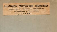 Αυτοσχέδιος φάκελος που περιέχει 2 προσκλήσεις εκθέσεων, 2 δακτυλόγραφες λίστες με τίτλους έργων και τιμές.