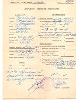 Αντίγραφο με καρμπόν επίσημης φόρμας με πρωτότυπη αναγραφή του Αριθμού Μητρώου, ημερομηνίας και υπογραφή, από το Ταμείο Αρωγής Υπαλληλών του Υπουργείου Εθνικής Παιδείας και Θρησκευμάτων, συμπληρωμένης με τα στοιχεία του δικαιούχου του λογαριασμού.