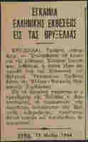 Απόκομμα από την εφημερίδα Εστία με αναφορά στην έκθεση των Βρυξελλών στο Palais des Beaux Arts.
