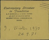 Αλληλογραφία με τον Andrea Shroeder στον Καναδά σχετικά με την έκδοση της Contemporary Literature in Translation και σχετικές αποδείξεις οικονομικών συναλλαγών.